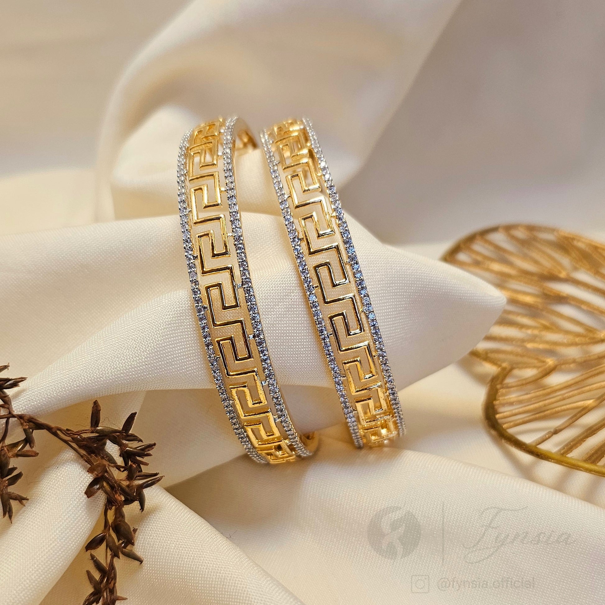 Golden Meera 2pc Bangles Set, Best Seller,Elevate Your Style With Fynsia's Exquisite Collection Of Women's Jewellery. Size Available - 2.4 2.6 2.8 Our Pieces Are Designed To Add A Touch Of Elegance And Sophistication To Any Outfit. Whether You'Re Looking For A Statement Necklace, A Dainty Bracelet, Or A Pair Of Sparkly Earrings, Fynsia Has You Covered.