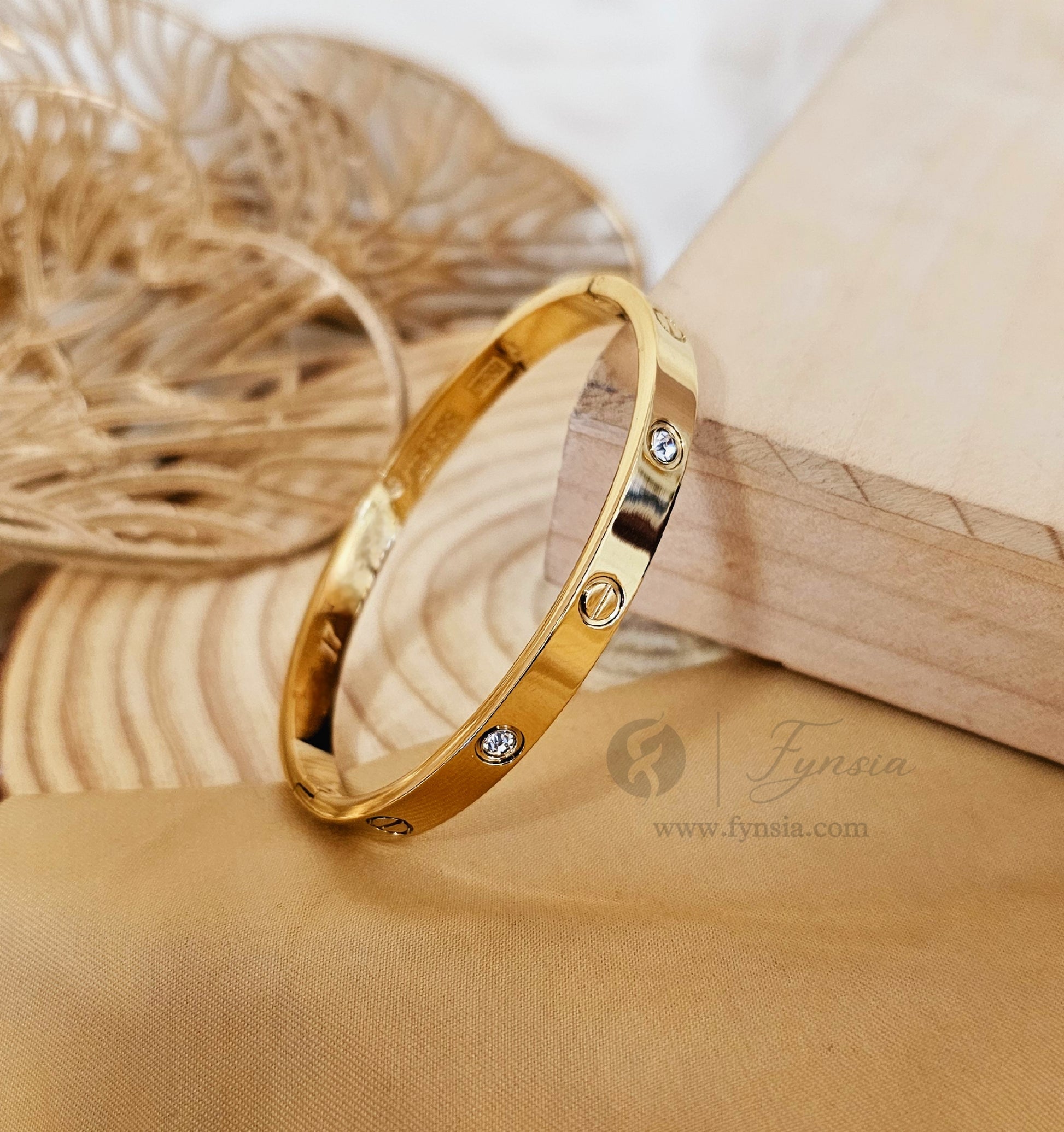 Fynsia kadas are crafted using high-quality base metals with premium gold or silver-toned finishes, designed to offer durability, comfort, and a refined look when worn with proper care.